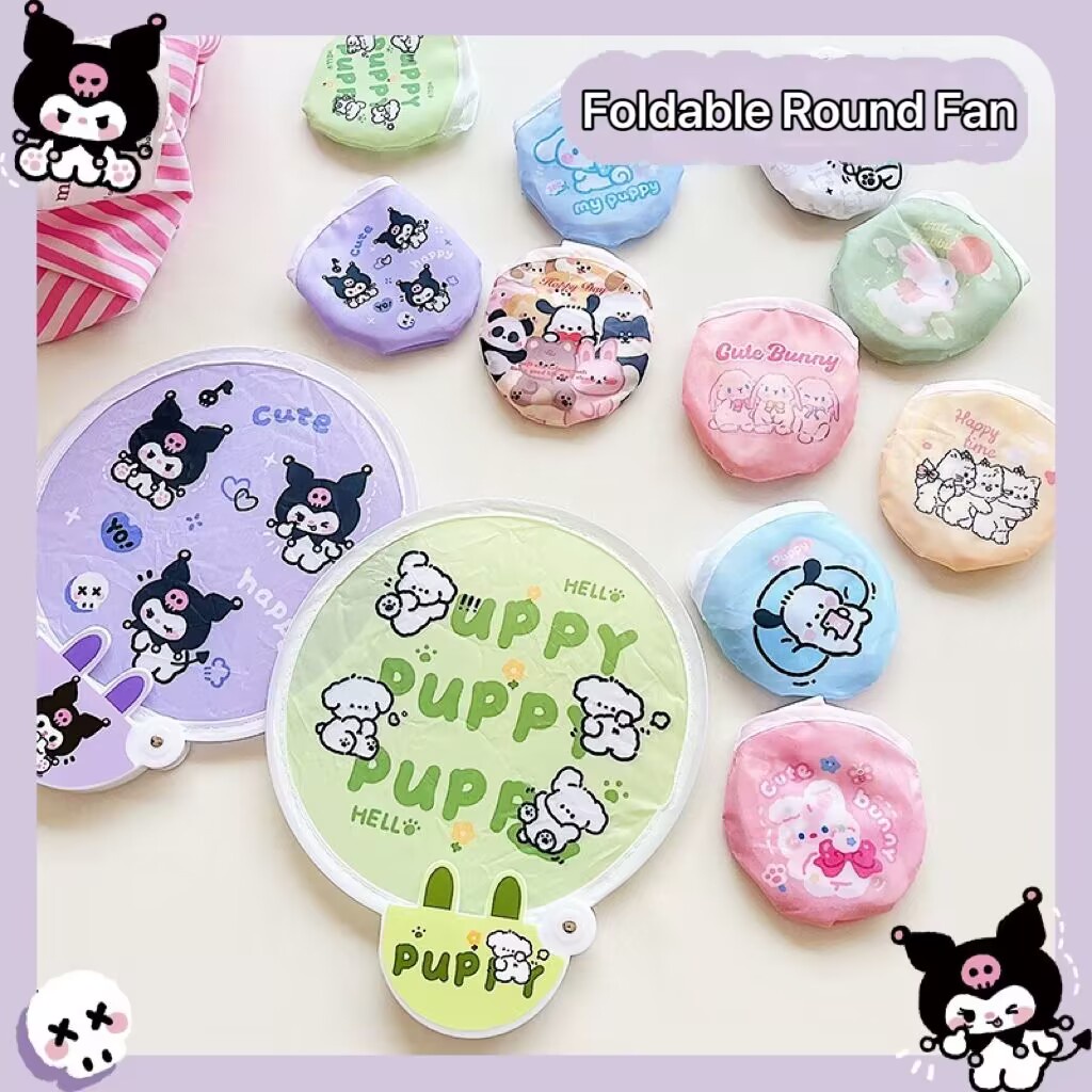 Cartoon Folding Group Fan Kuromi Melody Foldable Student Handheld Cute Mini Portable Round Fan School