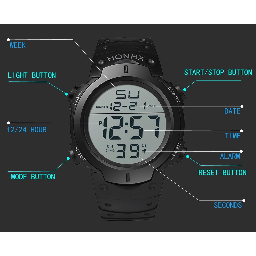 Men Watch Waterproof Silicone Led Digital Stopwatch Date Sport Wrist Watches